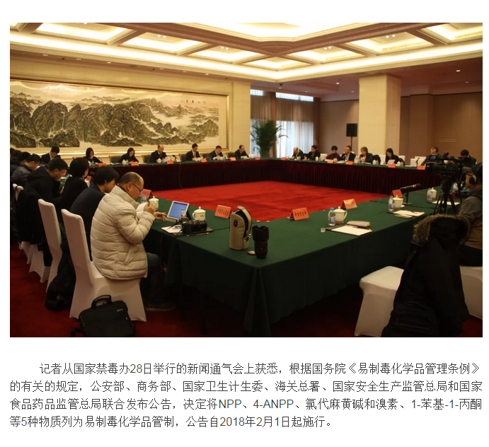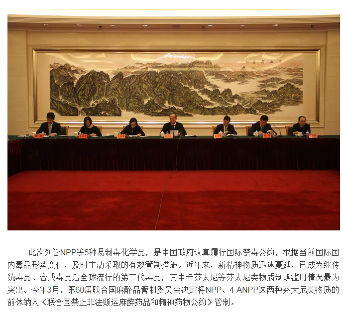 上一篇: 国务院办公厅关于同意将 N-苯乙基-4-哌啶酮、4-苯胺基-N-苯乙基哌啶、 N-甲基-1-苯基-1-氯-2-丙胺、溴素、1-苯基-1-丙酮 列入永兴集团网站品种目录的函